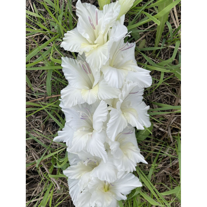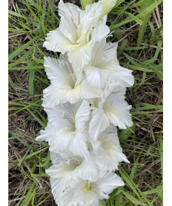 Дивинити в переводе - "божественный". Гладиолус, имеющий всемирное признание. Белые сильно гофрированные цветы с сиреневыми тычинками.